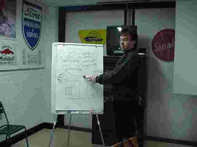 | Bilkabinettet i samband med cafeét är utrustat för konferenser. 50personer får plats vid borden. Här föreläser vi också om vår verksamhet och om tex precisionsodling. |
