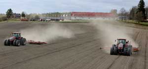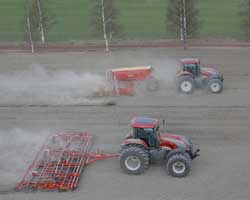 | Ennätyskylvö 164ha/24h Työtehoseura suunnittelema kyvölannoituksen ennätyskoe järjestettiin 24-25.4 2002 kartanon pelloilla. Vaihtelevissa pelto-olosuhteissa kylvettiin Valtra S (260 hv) traktorilla ja Väderstadin Rapid (6m) kylvölannoittimella 24 tunnin aikana 164 ha. Peltolohkojen koko vaihteli 5 – 35 ha:n välillä ja kylvössä käytettiin neljää eri siementuotantolajiketta. Kokeen lannoitemäärä oli n 550kg /ha ja siemenmäärä oli n 250kg/ha. Maailmanmestari Marcus Grönholm liputti ennätystuloksen päättyneeksi ja onnitteli kylvön suorittaneita kuljettajia Per Fimmerstadia, Patrik Cederskäriä ja Johan Mattsonia maalissa. Ennätyskylvö toteutettiin yhteistyössä Valtran, Väderstadin, Kemiran, Bernerin, JCB:n, Fortumin, Työtehoseuran ja neuvontajärjestöjen kanssa. |